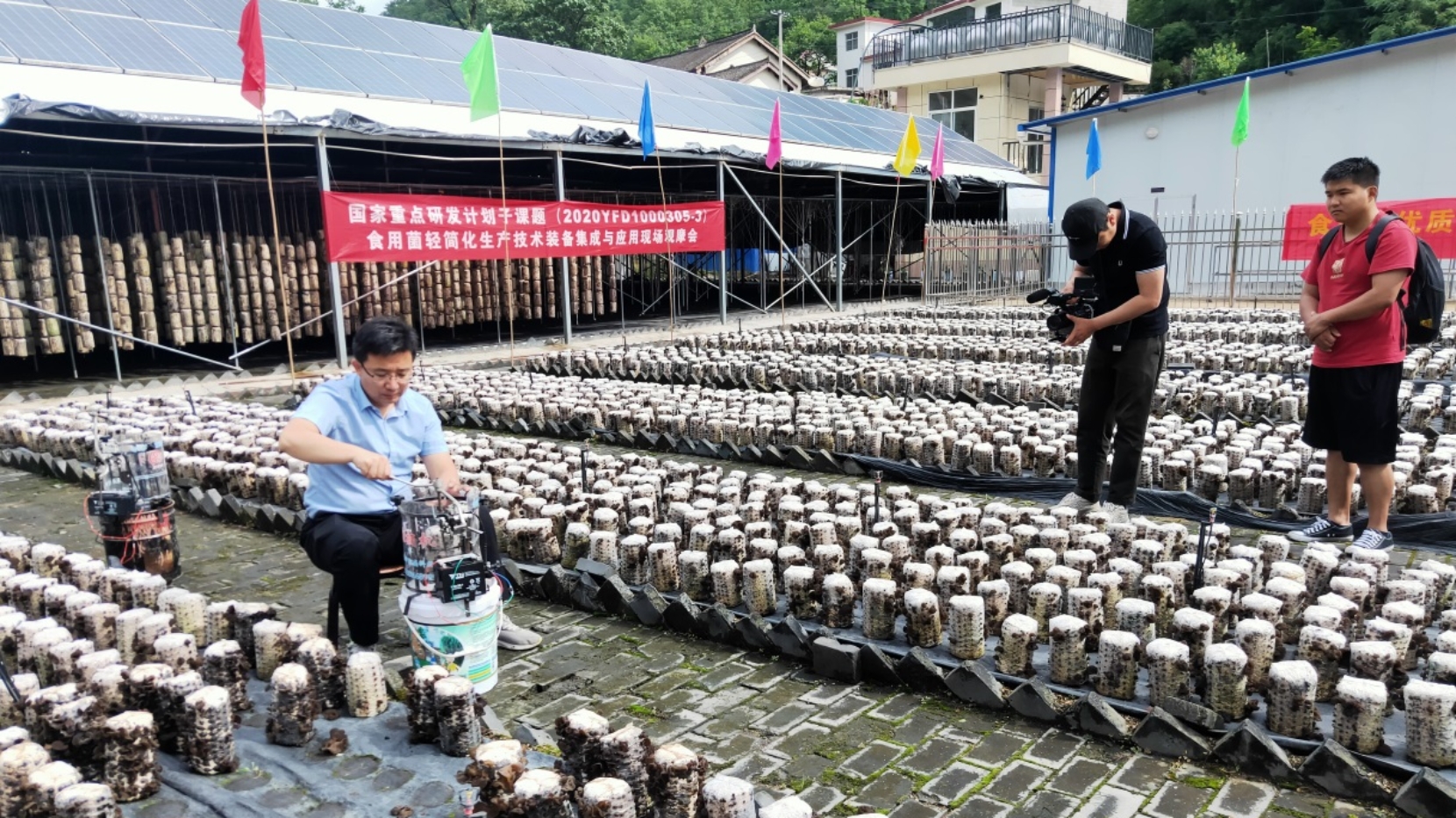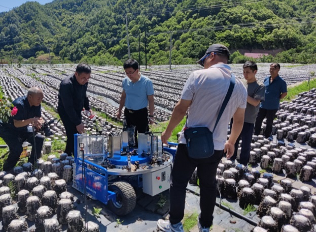 为加快推进陕西柞水黑木耳生产全程机械化进程,提升黑木耳采收环节中的机械化装备水平,近日,农业农村部南京农业机械化研究所果蔬生产与加工技术装备创新团队结合食用菌产业技术体系与国家重点研发计划“食用菌轻简化生产技术装备集成与应用”等项目的科研任务,与吉林农业大学、柞水县科技发展有限公司、陕西金鑫农业科技发展有限公司等单位在陕西省柞水县组织召开了黑木耳机械化采收现场观摩暨交流会。吉林农业大学食药用菌教育部工程研究中心主任李长田教授、吉林农业大学工程技术学院朱凤武副院长和孟宪章主任、柞水县科技发展公司柯贤根经理及南京农机化所王明友副研究员、周德欢助理研究员等人参加会议。